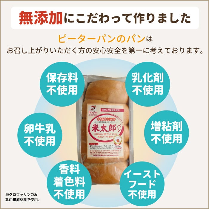 ピーターパンのパンは保存料不使用、天然酵母をはじめ自然な素材にこだわって作ったパンです。