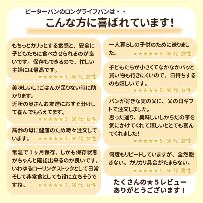 ピーターパンのパンは保存料不使用、天然酵母をはじめ自然な素材にこだわって作ったパンです。