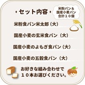 5種類の食パンをお好きな組み合わせで合計10本お選びいたけるお得なセットです。