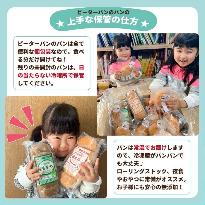 ピーターパンのパンは保存料不使用、天然酵母をはじめ自然な素材にこだわって作ったパンです。
