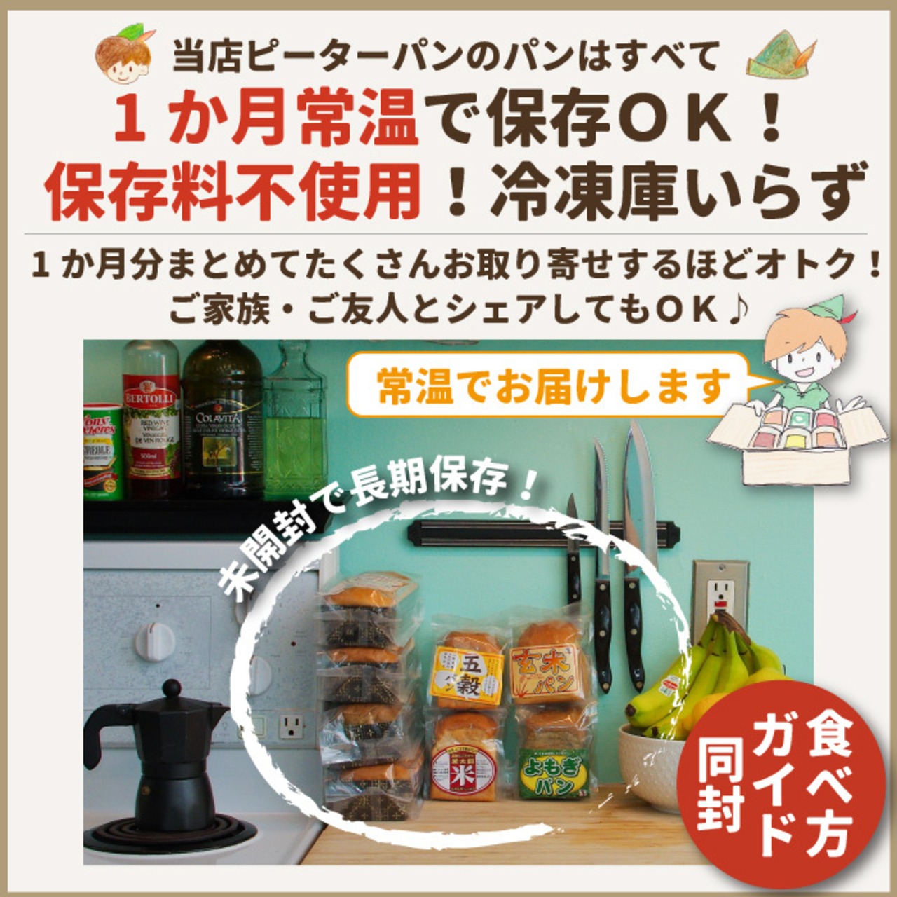 ピーターパンのパンは保存料不使用、天然酵母をはじめ自然な素材にこだわって作ったパンです。