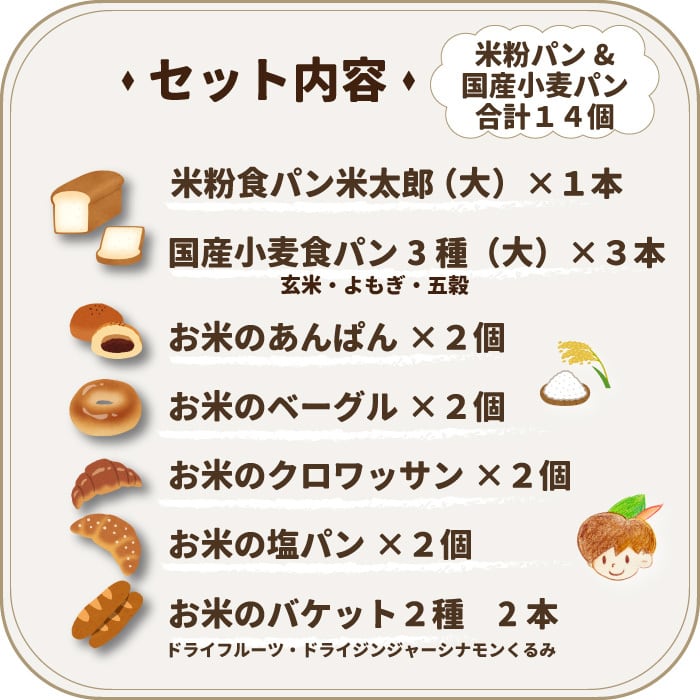 米粉パンと国産小麦パンの福袋(中)お得な14個セット